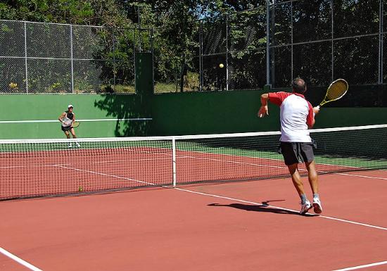Viel Spass auf dem beleuchteten Tennisplatz der Guacamaya Lodge.